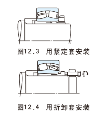 錐孔軸承是直接將內圈固定與錐形軸或者用緊定套、拆卸筒安裝到圓柱軸上,如圖12.3、12.4所示。